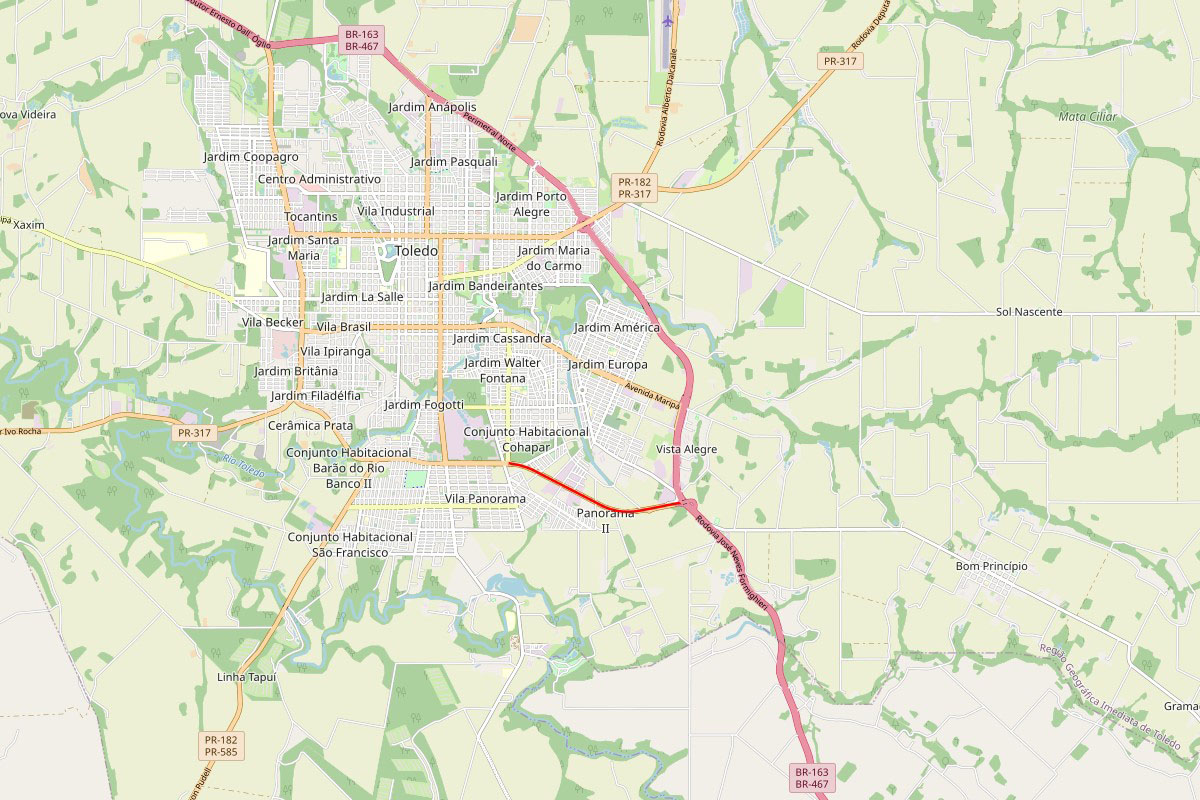 A obra incluirá ainda a pavimentação do acesso ao Centro de Socioeducação (Cense) de Toledo, próximo ao entroncamento com a BR-163, em uma extensão de 150 metros. Será uma pista simples com duas faixas de rolamento, além dos serviços de implantação de dispositivos de drenagem, sinalização e paisagismo.