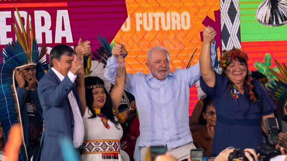Lula afirmou que é compromisso do novo governo restaurar as políticas públicas voltadas para a população indígena e retomar os processos de demarcação de terras. “Não só porque é um direito de vocês (povos indígenas), mas se a gente quer chegar a 2030 com desmatamento zero, vamos precisar de vocês como guardiões da floresta”, completou o presidente.