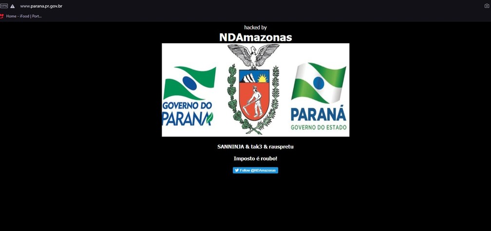 Sites do Governo do Paraná foram invadidos por hackers, na noite de sexta-feira (16). Ao abrir as páginas, o internauta recebe a mensagem: “imposto é roubo”.