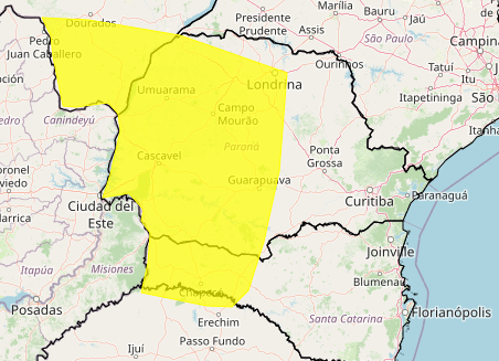 O aviso meteorológico começou a valer às 10 horas da manhã de hoje (27), e continuará em vigência até às 10 horas desta terça-feira (28).
