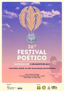 As inscrições para o Festival Poético do Sesc PR estão abertas até o dia 31 de agosto. Essa é a chance de fazer parte de uma coletânea exclusiva com obras literárias selecionadas em celebração à 36ª edição desta iniciativa cultural, que já publicou mais de mil produções poéticas contemporâneas de crianças, jovens e adultos de todas as regiões brasileiras, inclusive de cidadãos estrangeiros.