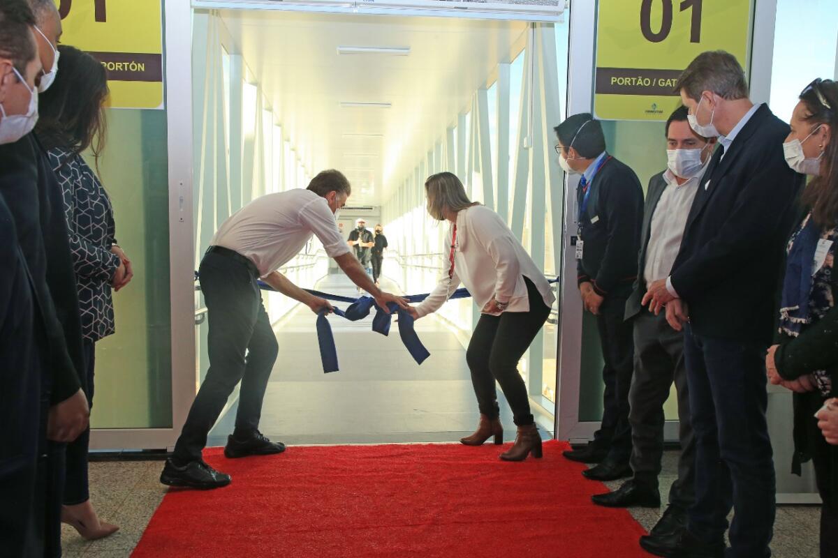 No embarque em São Paulo/Guarulhos ocorreu a cerimônia de corte de fita, com um discurso da Flavia Maciel, gerente de Aeroportos da LATAM Brasil, e os passageiros do primeiro voo foram presenteados com um kit de temperos, que faz alusão a um dos pratos típicos da região, o churrasco.