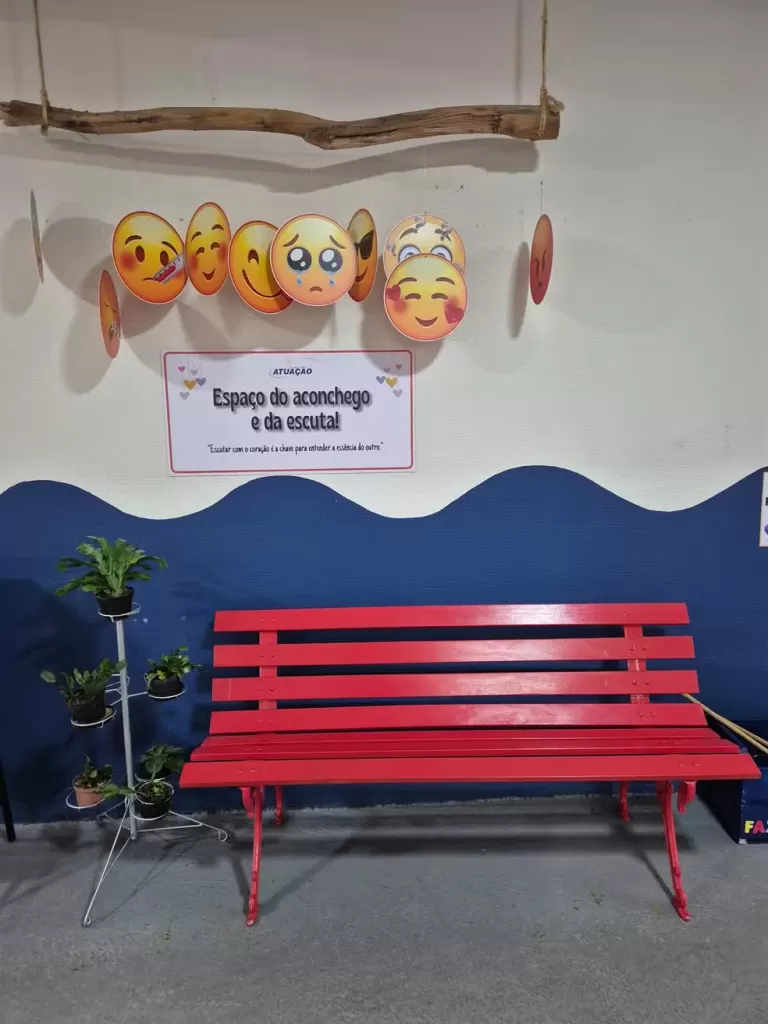 Em Curitiba, uma escola da rede privada adotou iniciativas focadas na escuta ativa e que colocam o adolescente como protagonista. Uma delas, é o “Banco das Emoções”, que deixa um assento posicionado no pátio da escola com indicações de sentimentos. O estudante que não consegue expressar pelo o que está passando pode se sentar nele e será acolhido por um adulto.