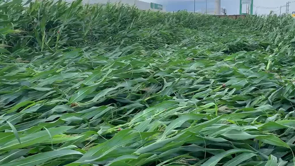Em Santa Lúcia, cidade que fica a 64 quilômetros de Cascavel, grande extensão de um milharal foi derrubada devido as fortes rajadas de vento na região. A imagem feita no local mostra a plantação toda caída.