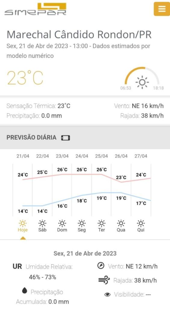 Confira a previsão do tempo para Marechal Cândido Rondon nos próximos dias: