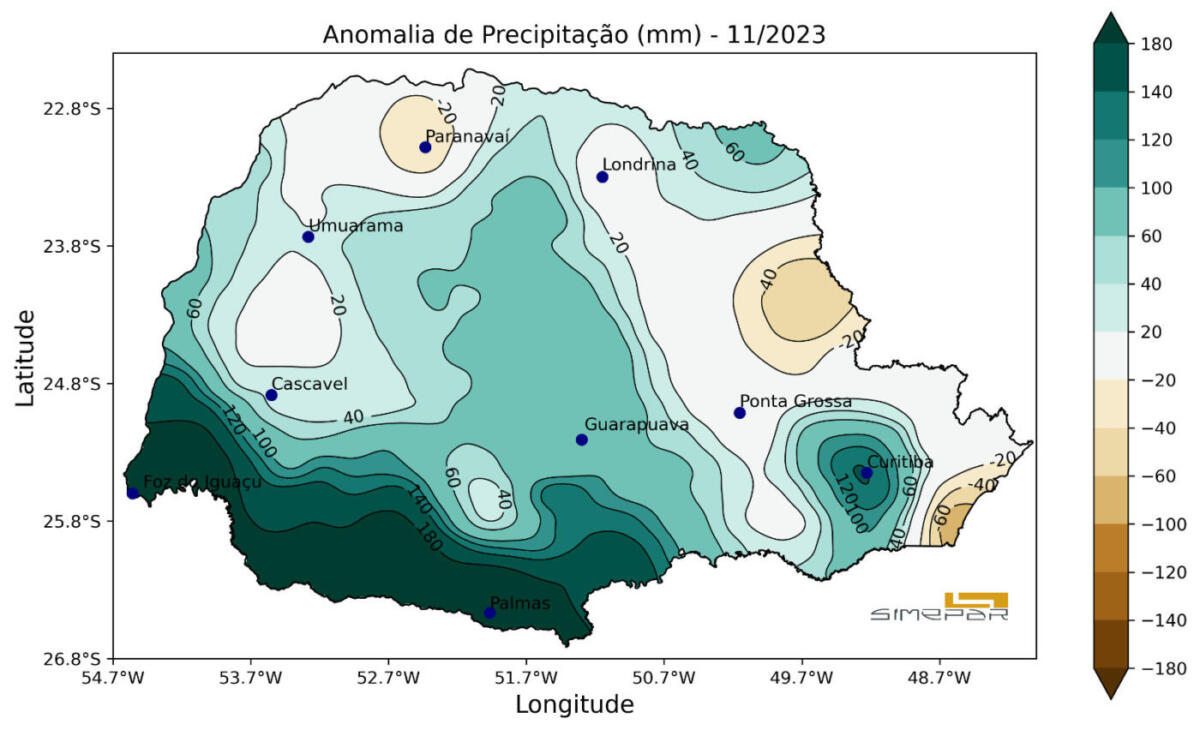 No mês de novembro, o Paraná sofre influência da passagem de algumas frentes frias que influenciaram as condições do tempo, ainda que a maioria tenha avançado de forma mais oceânica.