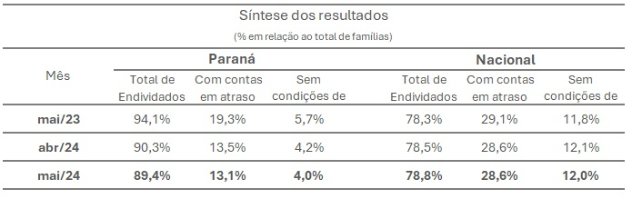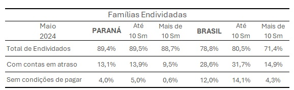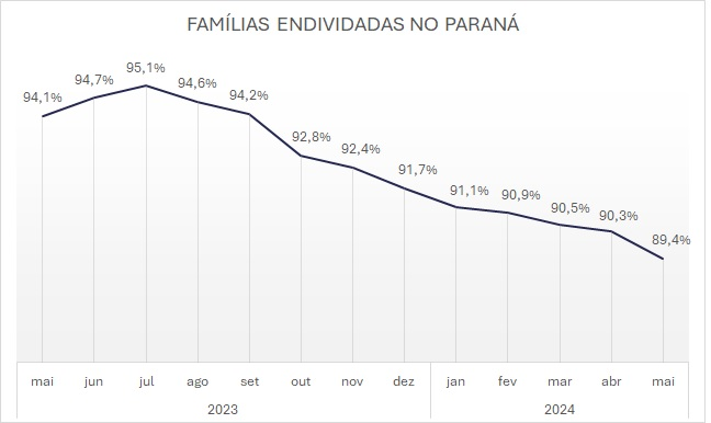 Pela primeira vez desde novembro de 2023 o Paraná saiu do topo da lista de estados brasileiros com maior número de endividados e passou para a terceira colocação. Em maio, o estado de Roraima ficou na primeira posição, com 89,9% da população endividada, seguida pelo Espírito Santo, com 89,8%.