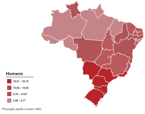 A taxa de incidência de câncer de intestino no Paraná é uma das maiores do país. São diagnosticados cerca de 20,8 casos a cada 100 mil habitantes. A incidência só é menor que Rio de Janeiro (25,35), Santa Catarina (32,4) e São Paulo (33,1).