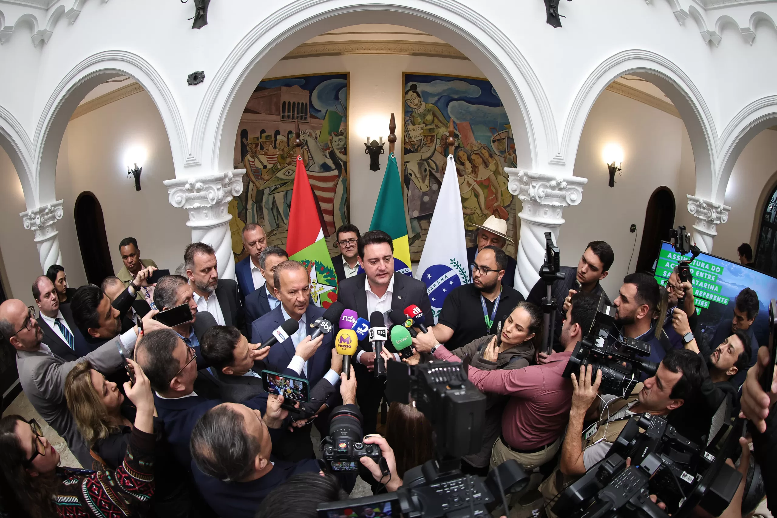 “Essa era uma discussão jurídica que durava mais de três décadas e agora chegamos em uma solução. Aquilo viraria um precatório, que poderia ser pago até 2030, 2035, e a população de Santa Catarina receberia esse dinheiro só daqui a 10 ou 15 anos, mas nós vamos pagar na forma de obras”, afirmou Ratinho Junior. “Trabalhamos juntos para buscar uma solução que pudesse atender tanto Santa Catarina como o Paraná.”