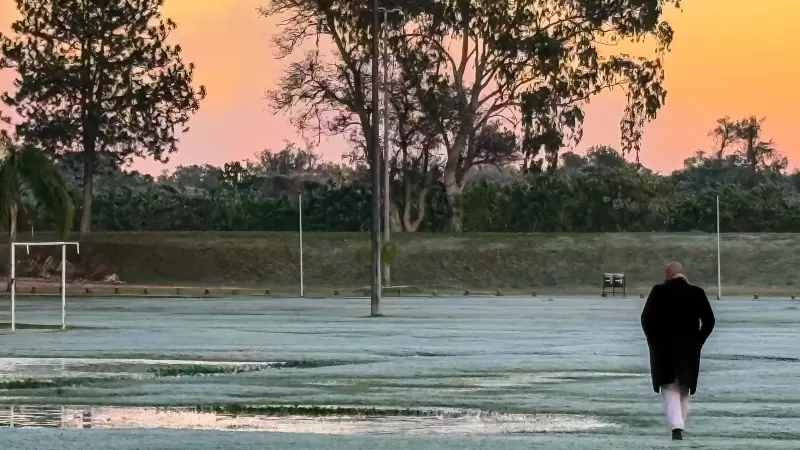 A terça-feira (28) amanheceu mais gelada no Paraná. De acordo com o Sistema de Tecnologia e Monitoramento Ambiental do Paraná (Simepar), uma massa de ar frio, na retaguarda da frente fria que se deslocou segunda-feira (27) para São Paulo, atingiu a região Sul do Paraná, e a temperatura mais baixa de 2026 até o momento em todo o Estado foi registrada às 6 horas, em Palmas: 3,9°C. Outras cidades que fazem divisa com Santa Catarina, como Mariópolis, General Carneiro e Clevelândia, tiveram registro de geada fraca.