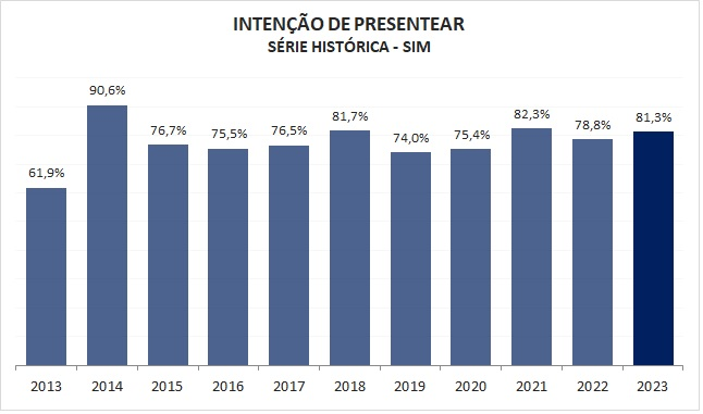No Paraná, 81,3% dos consumidores pretendem presentear parentes ou amigos neste Natal, segundo sondagem da Fecomércio PR e do Sebrae/PR. O percentual está acima dos 78,8% registrados em 2022.