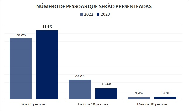 A maioria dos paranaenses, 83,6%, vai presentear até cinco pessoas. Outros 13,4% presentearão de seis a dez pessoas e apenas 3% comprarão presentes para mais de dez entes queridos.