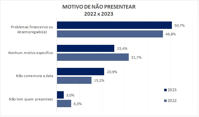 Uma parcela de 16,3% não comprará presentes, sobretudo por dificuldades financeiras ou por estar desempregado.