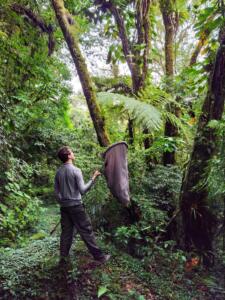 A característica de camuflagem desses insetos, essencial para sua sobrevivência, faz com que a pesquisa de campo com esperanças seja bastante trabalhosa. Para conseguir fazer o inventário faunístico, Marcos Fianco passou quase 40 dias no Parque, entre 2017 e 2019, coletando esperanças. Depois, os insetos foram levados para os laboratórios da UNILA, onde o pesquisador fotografou, analisou a morfologia e gravou o canto das esperanças. “As características acústicas são importantíssimas na comunicação destes insetos. Nós, pesquisadores, podemos utilizar esses registros na área da Taxonomia para identificação e reconhecimento de espécies. Também usamos esses registros na área de Ecologia, podendo até serem utilizados em escalas maiores, como em estudo das mudanças climáticas, a exemplo do aquecimento global, sobre a dinâmica dos parâmetros acústicos e distribuição de espécies”, destacou.