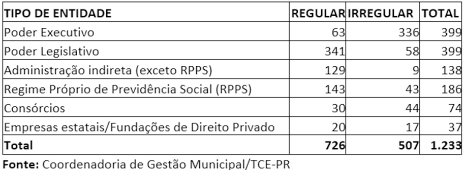 Todas as PCAs com apontamento de irregularidades serão submetidos ao contraditório. À exceção do Poder Executivo, o TCE-PR julga as demais contas da esfera municipal.