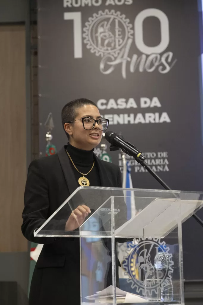 Representando o Confea pela região sul, e o presidente eng. telecom. Vinícius Marchese, a eng. civ. seg. trab. Caroline Burtet reforçou a relevância da premiação. “Parabéns pela condução desse Prêmio, é uma honra poder acompanhar esta noite. Em nome do presidente Vinícius, afirmo que o Crea-PR é exemplo em muitos aspectos, e este Prêmio é um deles”. Ela destacou ainda o motivo que a levou para a engenharia. “Eu vim para a engenharia por inspiração. A Enedina mostrou que é possível uma mulher ser engenheira onde e na área de atuação em que quiser e vocês mostram isso hoje. Temos que valorizar esse exemplo e permitir que mais meninas consigam enxergar a Engenharia como uma profissão que podem, sim, seguir”.