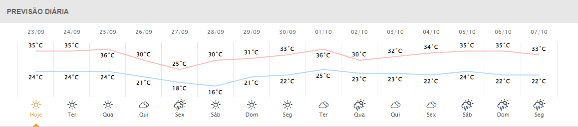 Confira a baixo a previsão dos demais dias para o município;
