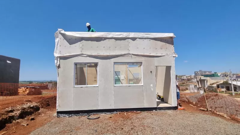 As obras foram iniciadas na última quarta-feira (3) com a fundação rasa, momento em que as instalações elétricas, hidráulicas e de gás já são realizadas. Durante o fim de semana (6 e 7 de dezembro), a estrutura principal da residência foi erguida, com a montagem das paredes, que chegam prontas com esquadrias e demais instalações, e o telhado. O próximo passo são os acabamentos finais, com instalação de cerâmica, pintura, gesso, louças e metais.