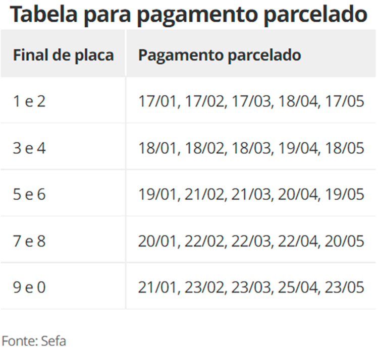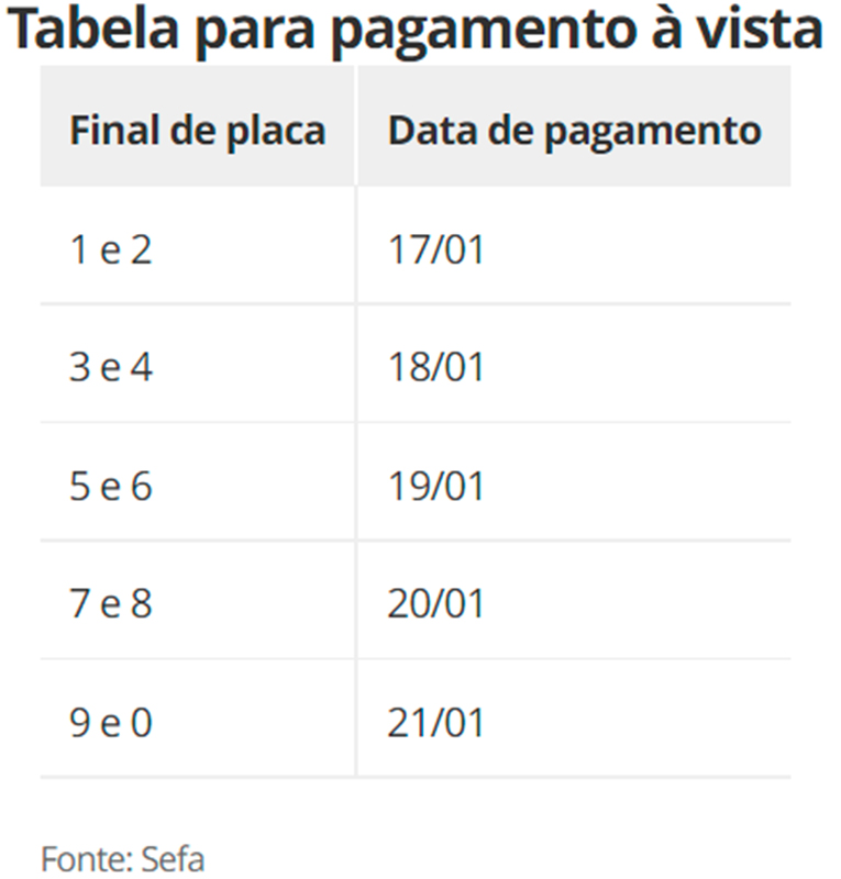 Confira, abaixo, o calendário de vencimento do IPVA.