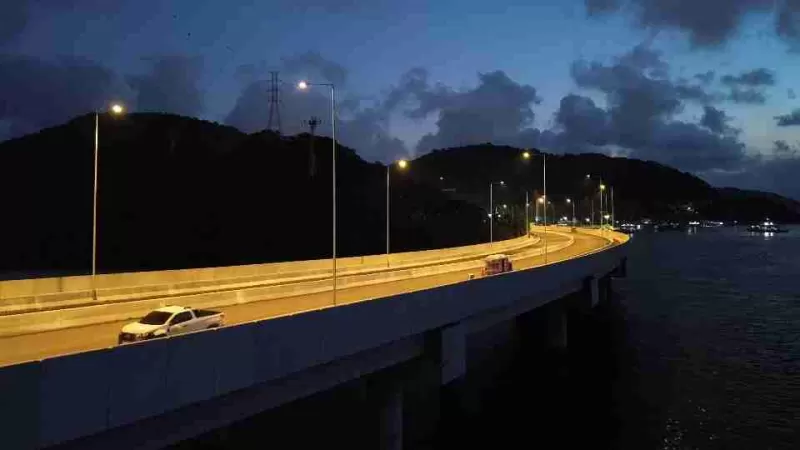 O projeto prevê a instalação de 211 postes ao longo de toda a ponte e seus acessos. Até o momento, cerca de metade já foi implantada, com maior concentração no lado de Guaratuba, enquanto o trecho de Matinhos ainda está em fase inicial dessa etapa.