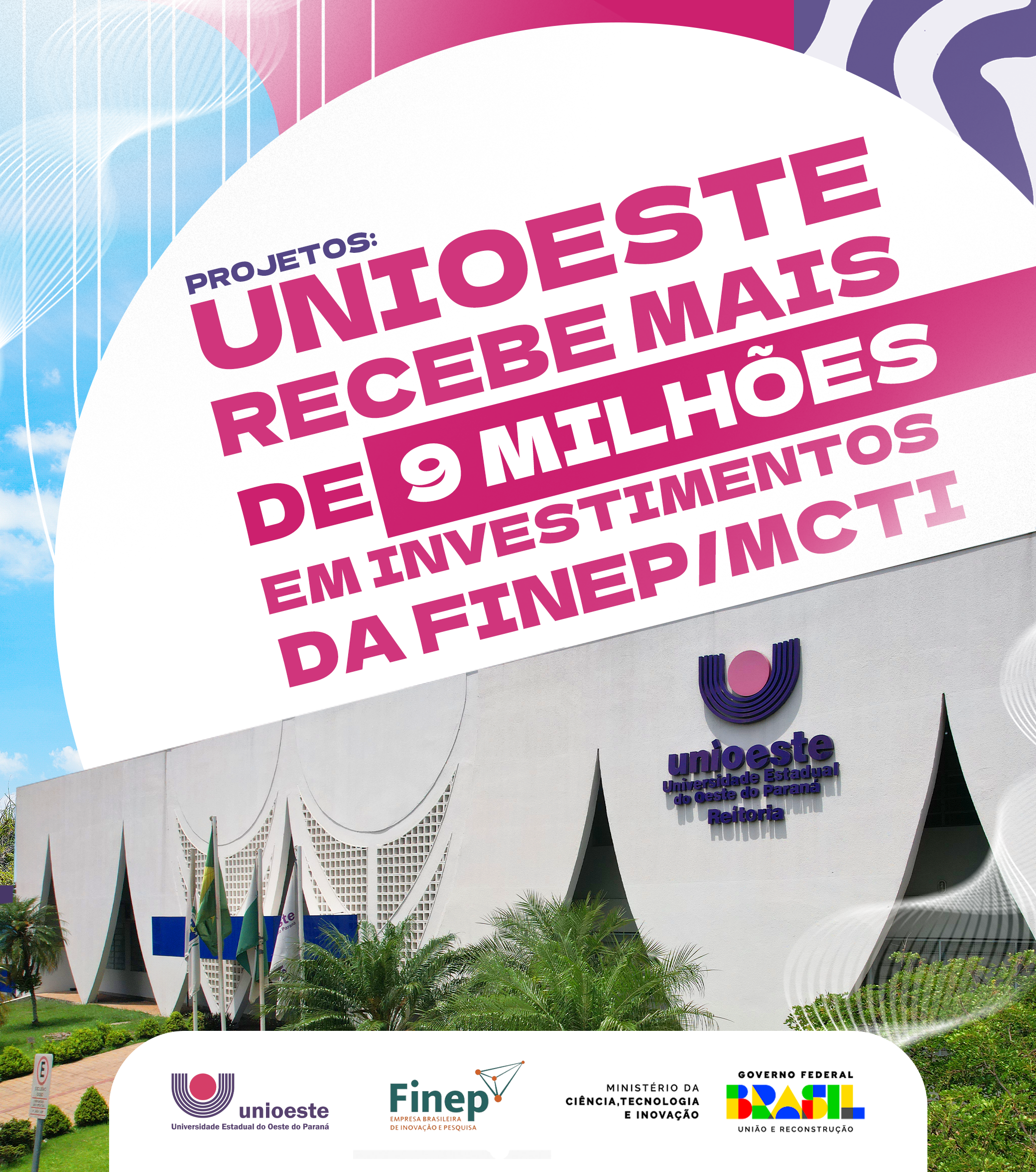 A Universidade Estadual do Oeste do Paraná (Unioeste) recebeu do Ministério da Ciência, Tecnologia e Inovações (MCTI), da Financiadora de Estudos e Projetos (FINEP) e do Fundo Nacional de Desenvolvimento Científico e Tecnológico (FNDCT), por meio da Chamada pública MCTI/FINEP/FNDCT – infraestrutura de pesquisa PROINFA 2023 expansão do valor de R$ 9.299.326,04 para a execução do projeto “Ampliação da Estrutura Multiusuário da Unioeste com enfoque a sustentabilidade energética e alimentar”.