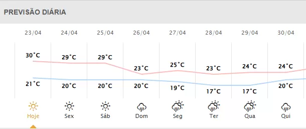 Para sexta-feira (24), a previsão indica a continuidade do tempo estável, com variação de nuvens em várias regiões do estado. No Leste, principalmente no litoral, não estão descartados chuviscos ocasionais durante a madrugada e início da manhã.