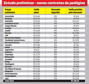 De modo geral, as informações que circulam da mídia e ainda são extraoficiais apontam a criação de 15 novas praças de pedágios e, ao mesmo tempo, uma suposta redução de R$ 20,82 no valor total pago em pedágios no Paraná, passando do valor atual de R$ 408,20 para R$ 387,38.