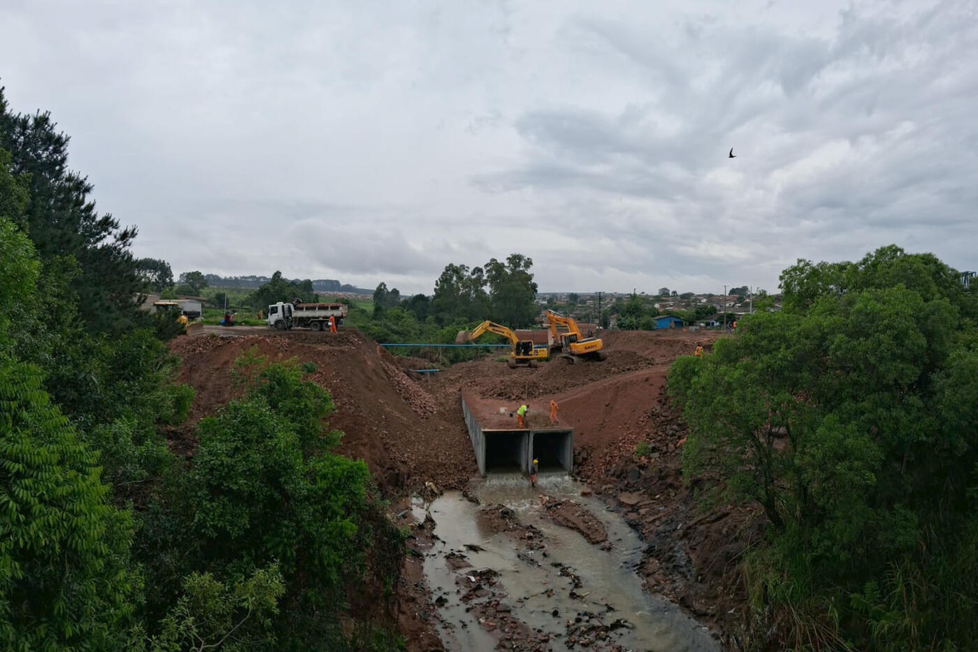 PRC-476 em União da Vitória – Bloqueio total no km 362, aguardando águas baixarem para executar desobstrução de bueiro e recomposição do pavimento.