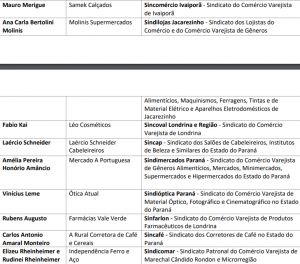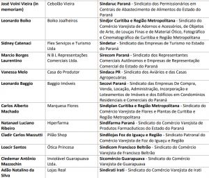 Participarão da solenidade o presidente do Sistema Fecomércio Sesc Senac PR e vice-governador do Paraná, Darci Pina; o presidente do Sindicato dos Lojistas do Comércio e do Comércio Varejista de Maquinismos, Ferragens, Tinta, Material Elétrico e Aparelhos Eletrodomésticos de Curitiba e Região Metropolitana (Sindilojas Curitiba e Região Metropolitana) e vice-presidente da Fecomércio PR, Ari Faria Bittencourt; o presidente do Sindicato dos Representantes Comerciais do Estado do Paraná (Sirecom) e vice- presidente da Fecomércio PR, Paulo Cesar Nauiack; o presidente do Sindicato dos Permissionários em Centrais de Abastecimento de Alimentos do Estado do Paraná (Sindaruc) e diretor da Fecomércio PR, Paulo Salesbram, que indicaram os homenageados presenciais, além do diretor regional do Sesc PR, Emerson Sextos, e do diretor regional do Senac PR, Rodrigo Sepulcri Rosalem.