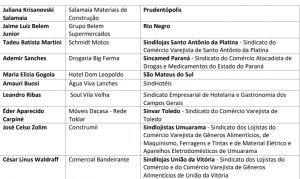 Entre os empresários que serão homenageados, recebendo menção honrosa, estão Elizeu Rheinheimer e Rudinei Rheinheimer, da Independência Ferro e Aço, empresa de Marechal Cândido Rondon, indicado pelo Sindicato Patronal do Comércio Varejista de