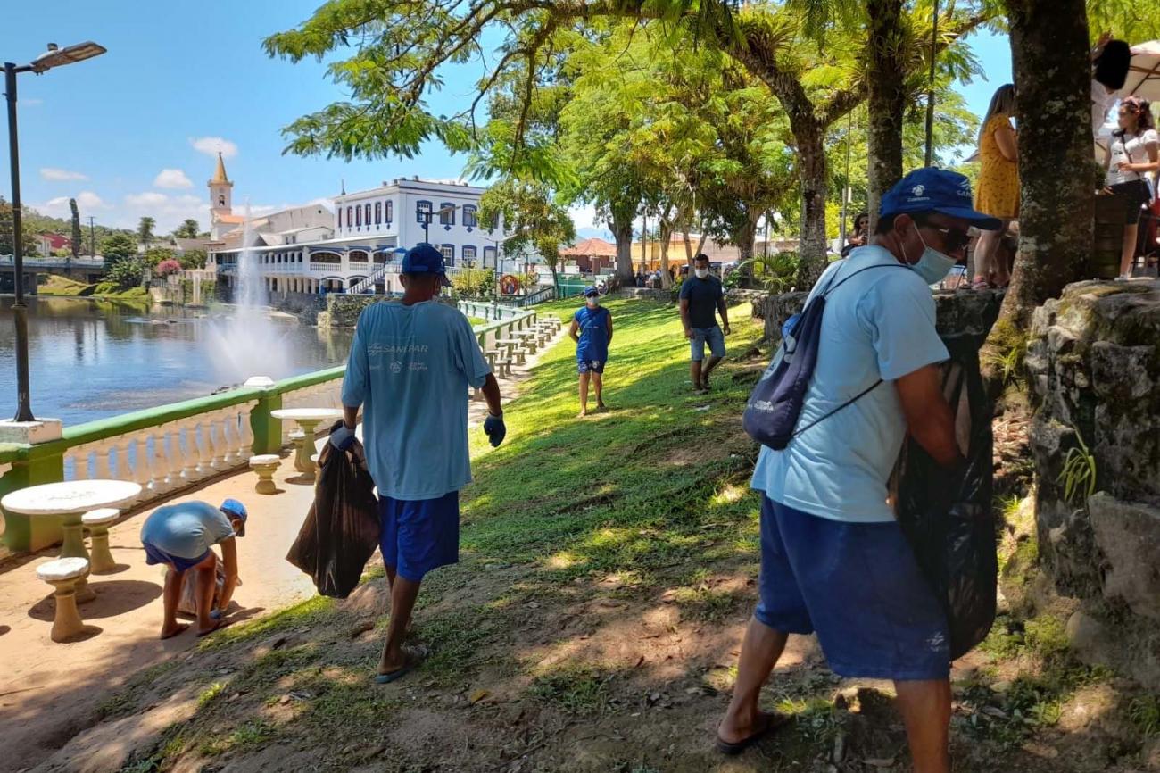 Os coletores também distribuíram sacolas plásticas para coleta do lixo aos visitantes da tradicional feirinha de artesanato de Morretes.