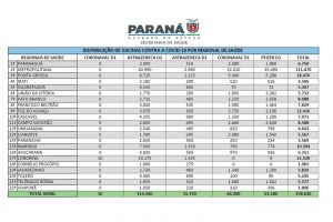 Confira a distribuição de doses por Regional de Saúde: