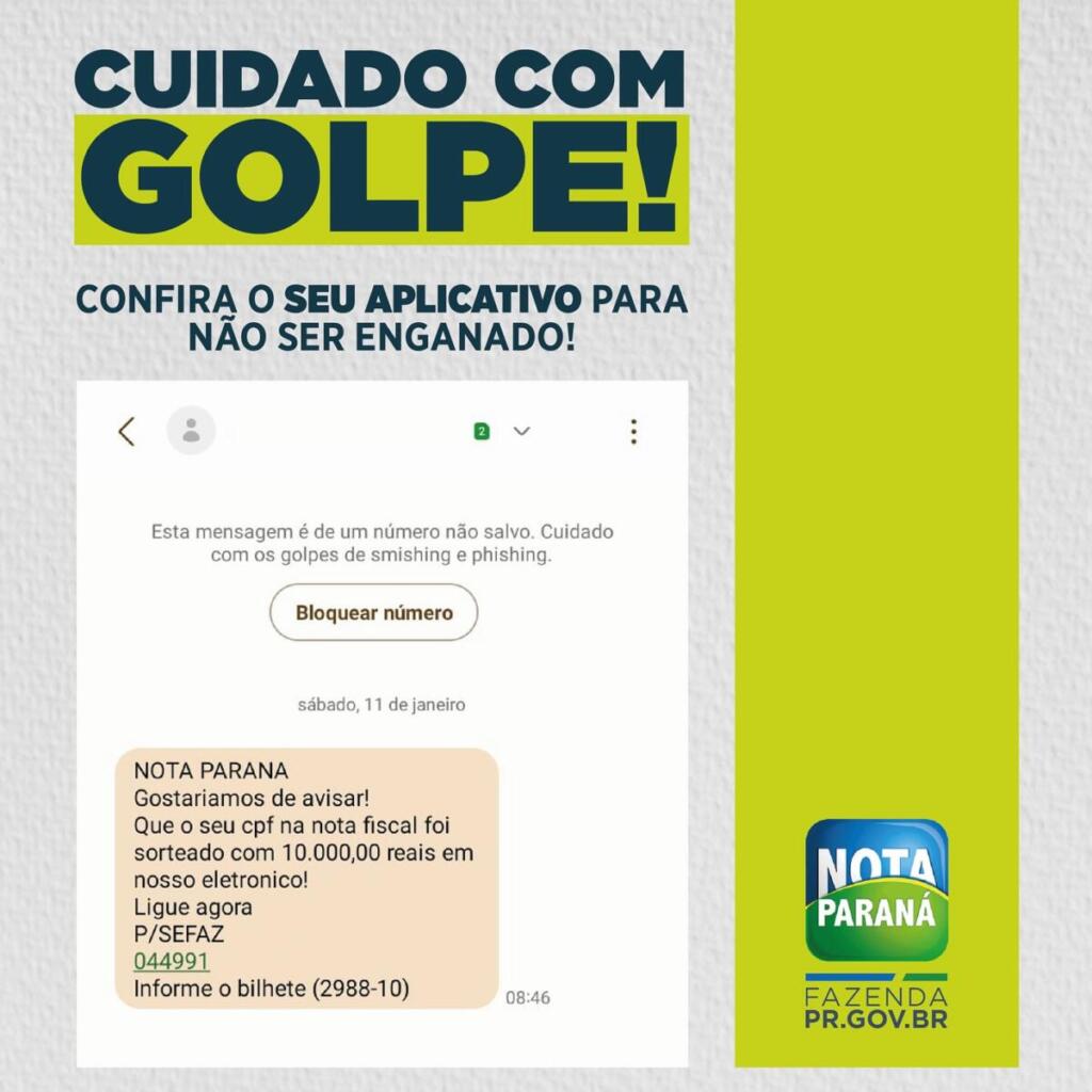 A Secretaria da Fazenda do Paraná alertou na segunda-feira (13) sobre golpes envolvendo o programa Nota Paraná.