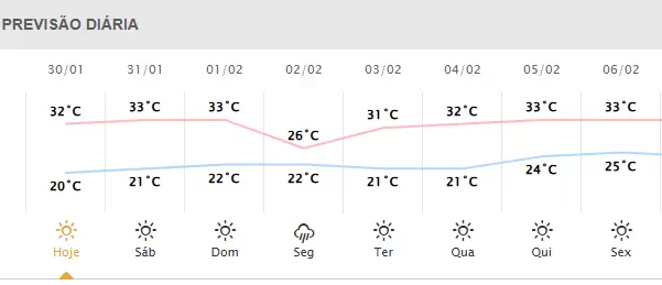 Dia será quente em Foz do Iguaçu, com termômetros na casa dos 31°C, rajadas de ventos de 29km/h e umidade do ar entre 49% e 96%.