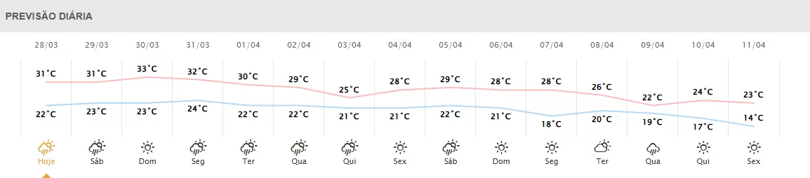 Em Toledo a previsão é de sol entre nuvens e possibilidade de 3,9 milímetros de chuva a partir da tarde. As temperaturas variam de 21°C a 31°C.