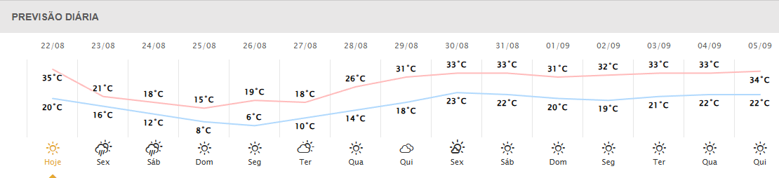 Marechal Cândido Rondon deve saltar de 35ºC, máxima prevista para essa quinta-feira, para 6ºC, mínima indicada pelo Simepar para segunda-feira (6).
