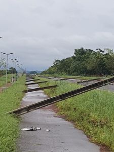 Postes caíram por causa das chuvas e ventos fortes (Foto: Roberto Wolfart/RPC)