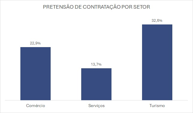 O setor de turismo lidera as intenções de contratação, com 32,6% das empresas prevendo a abertura de vagas temporárias. No comércio, o índice chega a 22,9%, enquanto entre as prestadoras de serviços, o percentual é de 13,7%.