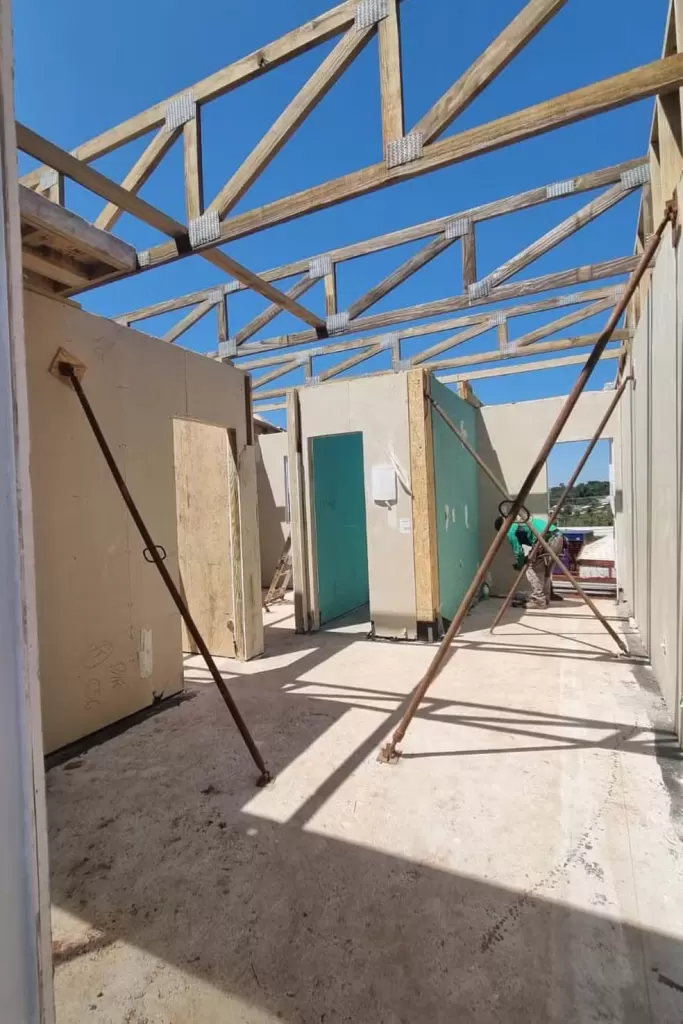 “As residências estão sendo construídas no sistema wood frame, que reduz consideravelmente o tempo de execução do serviço. As casas são compostas de sala, cozinha, dois quartos, banheiro e lavanderia. A área da estrutura tem três variações: 45 m², 48 m² e 50 m²”, explica o governo.
