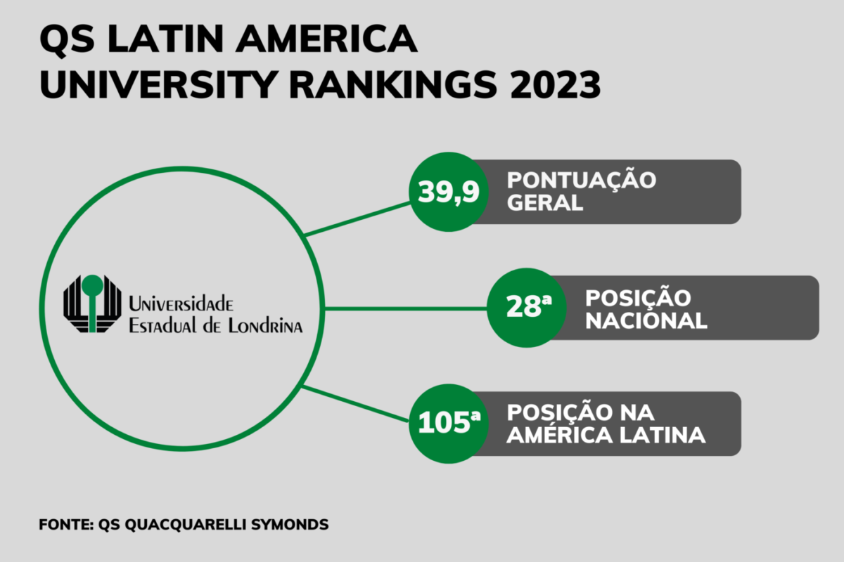 O Paraná tem dez universidades na lista das melhores instituições de ensino superior da América Latina. Entre 98 instituições brasileiras, públicas e privadas, o QS Latin America University Rankings 2023 destaca as universidades estaduais de Maringá (UEM) e Londrina (UEL) classificadas nas posições 27 e 28, consolidadas no Top 30 nacional. Na sequência, as universidades estaduais de Ponta Grossa (UEPG), do Oeste do Paraná (Unioeste) e do Centro-Oeste (Unicentro) figuram nas posições 46, 60 e 73, respectivamente.