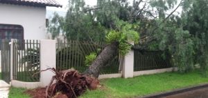Em Ponta Grossa, nos Campos Gerais, houve registro de seis destelhamentos e também da queda de 11 árvores. Equipes do Corpo de Bombeiros trabalham na retirada.