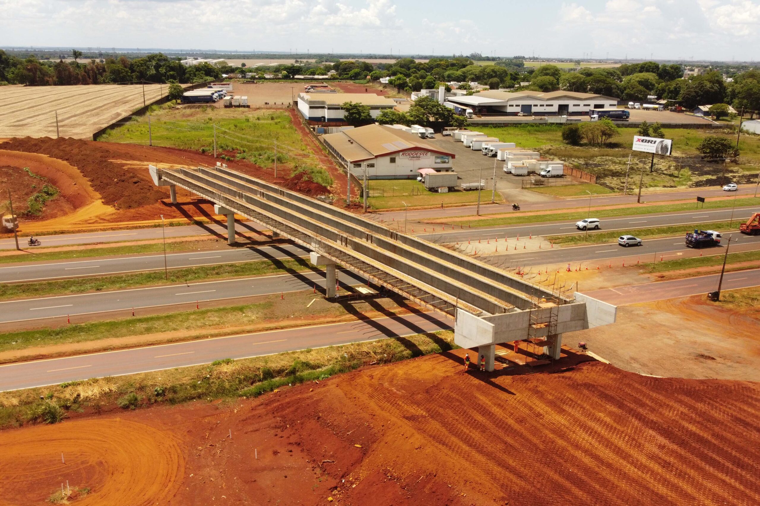 A medida é necessária para o lançamento de pré-lajes de concreto do viaduto, que recentemente teve suas vigas longarinas posicionadas sobre os pilares.
