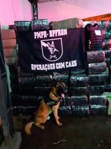 O Pelotão de Operações com Cães do BPFron aprendeu 19.601,42 quilos de drogas em 2021.