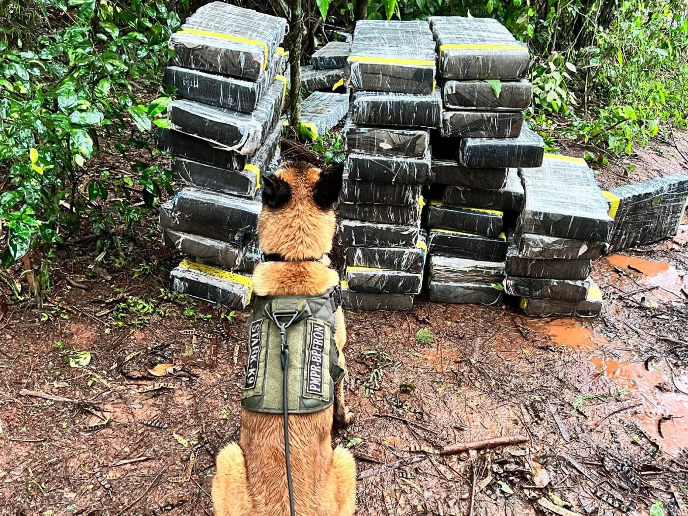 Na quinta-feira (20), policiais militares do Batalhão de Polícia de Fronteira (BPFron) realizavam patrulhamento em portos clandestinos na cidade de Santa Helena, quando o cão farejador do Pelotão de Operações com Cães do BPFron indicou a presença de ilícitos em uma determinada região de mata.