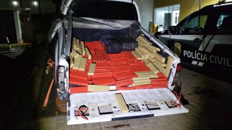 Ao vistoriar o veículo, os policiais encontraram a grande quantidade de maconha, dividida em fardos. A droga e a caminhonete foram encaminhadas à delegacia de Cascavel para as providências legais.