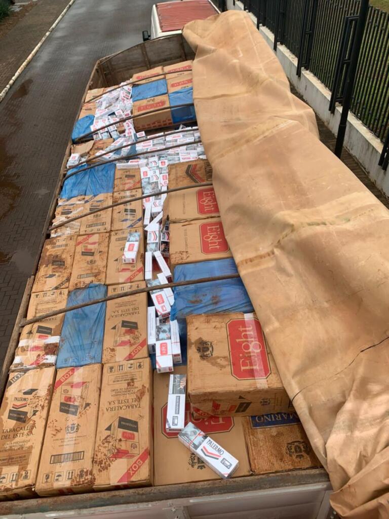 Mesmo assim, a equipe continuou no encalço do caminhão por cerca de dois quilômetros, quando o motorista adentrou em uma plantação e abandonou o veículo próximo a uma mata daquela propriedade. Ao checar o veículo, contatou-se que estava carregado com aproximadamente 17,5 mil pacotes de cigarros de origem estrangeira.