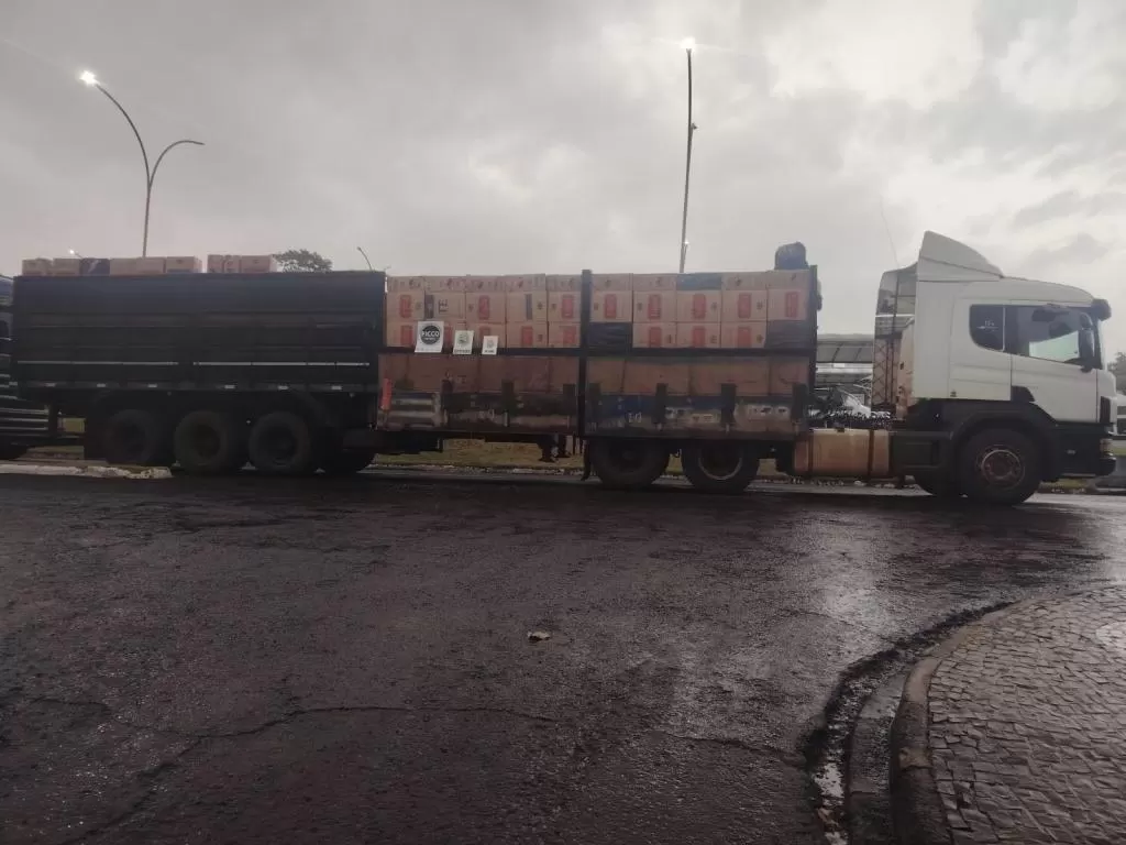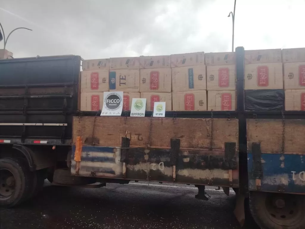 Durante a fiscalização, a Receita Federal foi acionada e identificou que a nota fiscal apresentada pelo caminhão branco era falsa. Com a autorização para abertura do compartimento de carga, os policiais encontraram 603 caixas de cigarros contrabandeados do Paraguai, totalizando 30.150 pacotes.