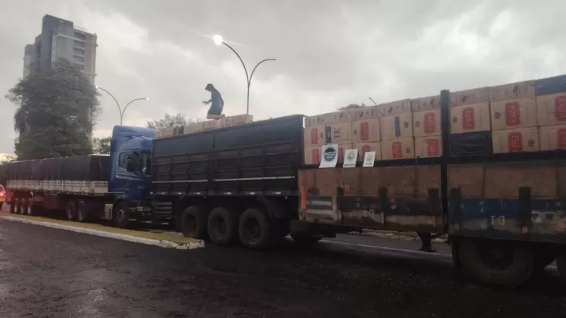 No caminhão azul, os policiais constataram que os condutores eram irmãos, ambos de nacionalidade paraguaia, o que reforçou a suspeita de atuação conjunta no esquema de contrabando e no uso do veículo como batedor da carga ilícita.