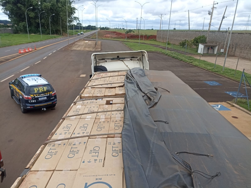 O motorista alegou que estava transportando soja, que havia carregado no Mato Grosso do Sul e levaria até a cidade de Toledo. Porém, ao retirar a lona que cobria a carga, os policiais encontraram cerca de 600 mil maços (1.200 caixas) de cigarros contrabandeados do Paraguai.