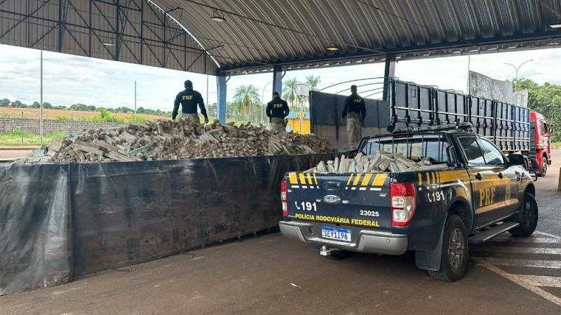 Dez minutos depois, às 07h, no mesmo local da abordagem do bitrem de cigarros, a equipe da PRF visualizou outro caminhão com placas paraguaias. O condutor, um paraguaio de 31 anos, ao ser abordado, afirmou que o veículo estava vazio. No entanto, diante do extremo nervosismo do motorista, os policiais decidiram fiscalizar o compartimento de carga e descobriram um fundo falso repleto de maconha.